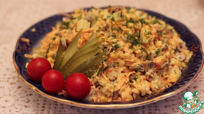 Салат "Сытный" с куриными сердечками Кулинарный рецепт Подробнее