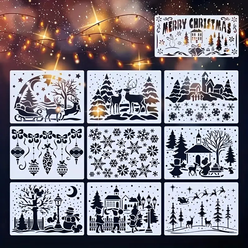 10 шт трафареты на рождественскую тему многоразовые - Temu Moldova