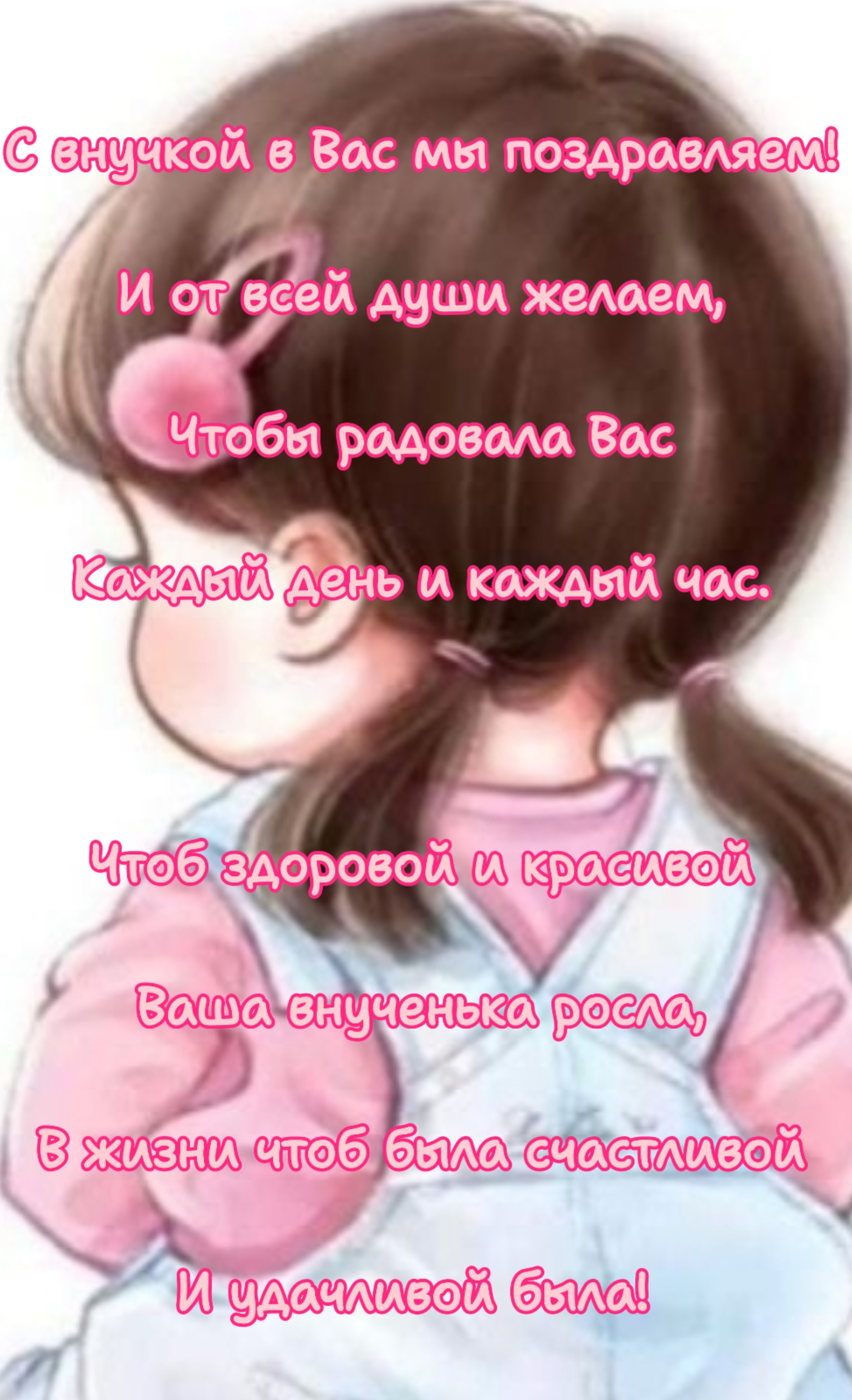 С внученькой поздравить очень рады.Девочка у дочери родилась.Собирайте внучке на помадыИ на платья — все желанья ваши сбылись.