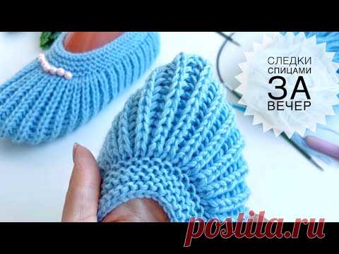 СУПЕР ПРОСТАЯ МОДЕЛЬ ДОМАШНИХ СЛЕДКОВ СПИЦАМИ на двух спицах. Подробный мастер-класс.