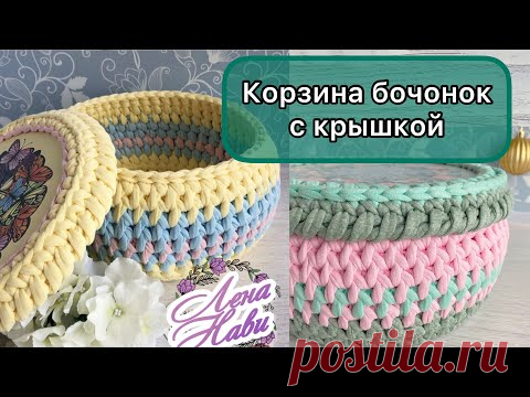 КАК СВЯЗАТЬ КОРЗИНУ В ФОРМЕ БОЧОНКА НЕОБЫЧНЫМ УЗОРОМ🌟 Вяжем крючком из трикотажной пряжи🌟