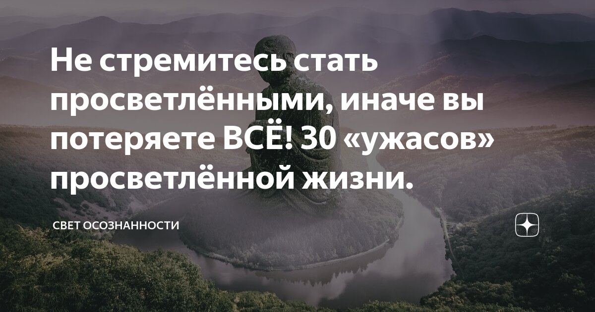 Не стремитесь стать просветлёнными, иначе вы потеряете ВСЁ! 30 «ужасов» просветлённой жизни. Статья автора «Свет осознанности» в Дзене ✍: Сейчас на просторах нашего информационного пространства в поп-эзотерике бренд просветления популярен.