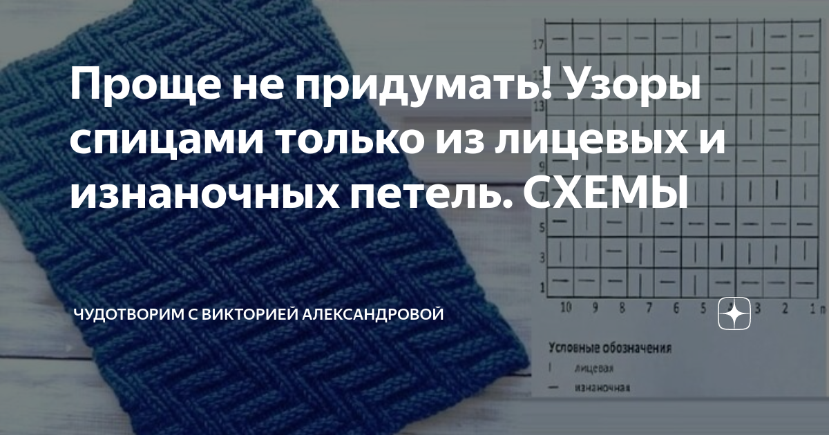 Проще не придумать! Узоры спицами только из лицевых и изнаночных петель. СХЕМЫ Статья автора «ЧудоТворим с Викторией Александровой» в Дзене ✍: Если вы только начинаете осваивать вязание спицами или не любите сложные узоры, то эта подборка точно для вас!