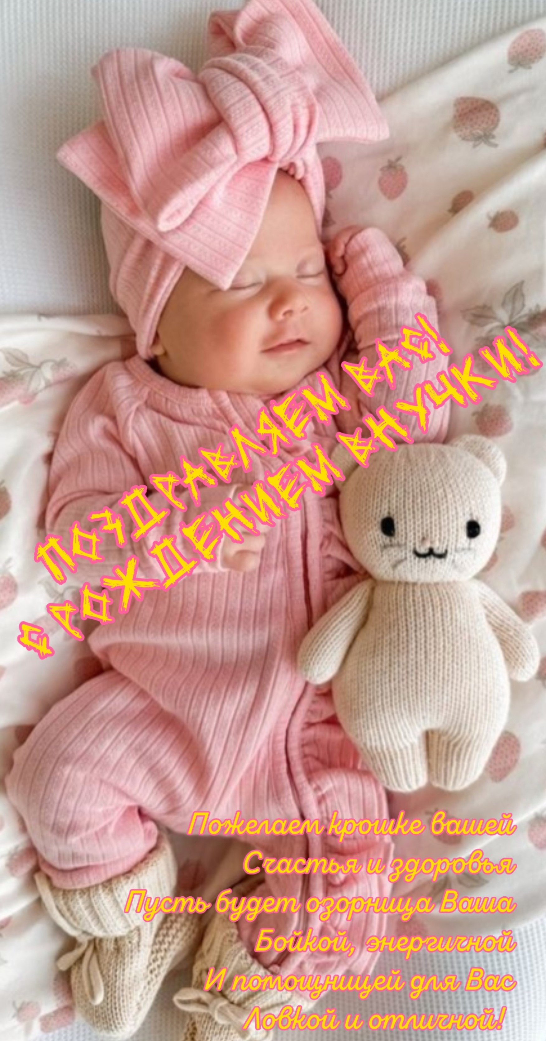 С рождением внучки прелестной! Растет пусть малышкой чудесной, Пусть будет здоровою, милой, Задорной, забавной, счастливой, Секреты добра открывая И вас в мир чудес увлекая!