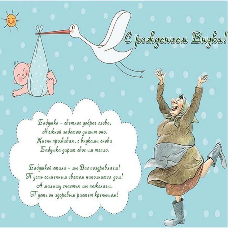 С новорожденным вас! С милым внуком! Развивается пусть он, растет. Будет смелым пусть, склонным к наукам, Счастье в жизни пускай он найдет.