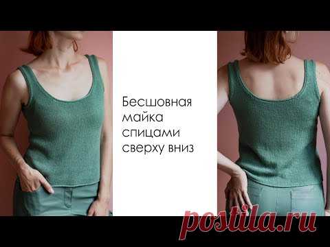 БЕСШОВНАЯ МАЙКА СПИЦАМИ СВЕРХУ. Мастер-класс. Базовый топ спицами.