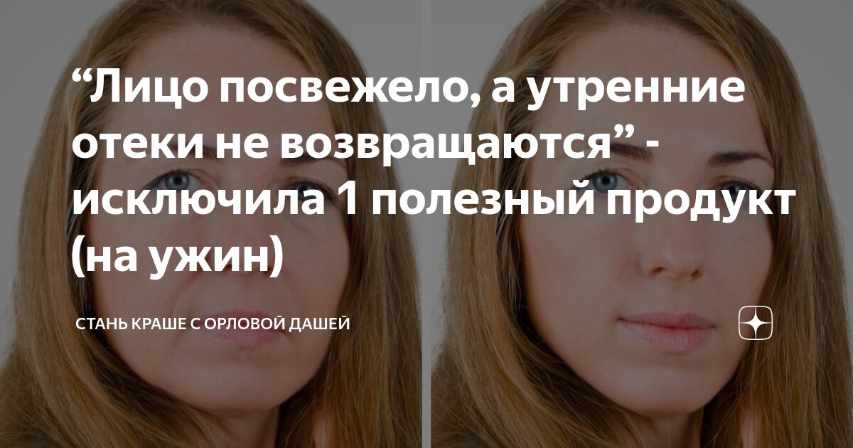 “Лицо посвежело, а утренние отеки не возвращаются” - исключила 1 полезный продукт (на ужин) Статья автора «Стань краше с Орловой Дашей» в Дзене ✍: Если по утрам Вас беспокоит одутловатость лица и припухлости под глазами - спросите себя что и в каком количестве Вы привыкли съедать на ужин.
