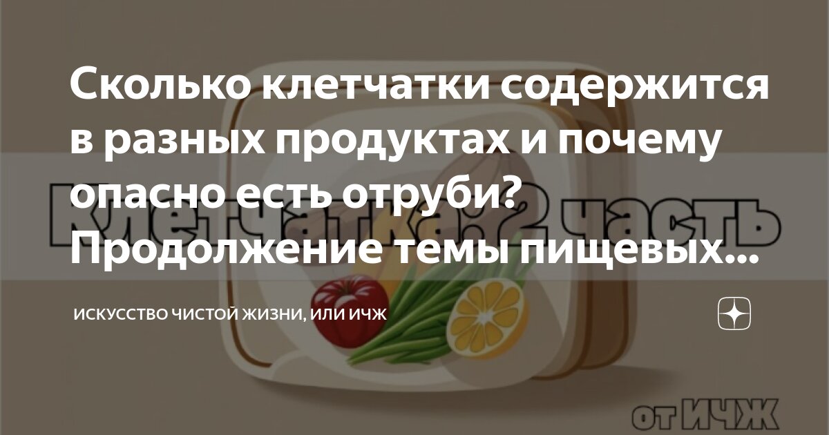 Сколько клетчатки содержится в разных продуктах и почему опасно есть отруби? Продолжение темы пищевых волокон Статья автора «Искусство чистой жизни, или ИЧЖ» в Дзене ✍: В прошлой статье мы обсудили необходимость ежедневного потребления клетчатки: Вы на канале ИЧЖ, и сегодня мы поговорим об источниках...