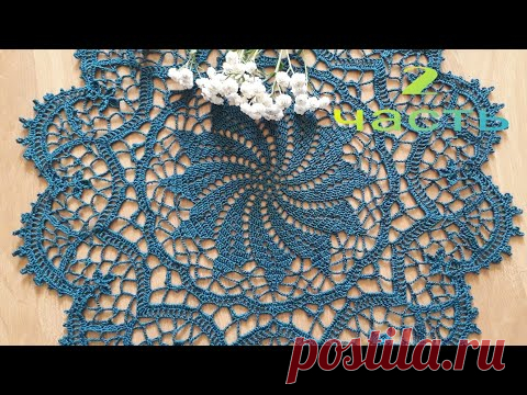 Салфетка крючком "Цветочный вихрь", 2 часть (16-22 ряд).