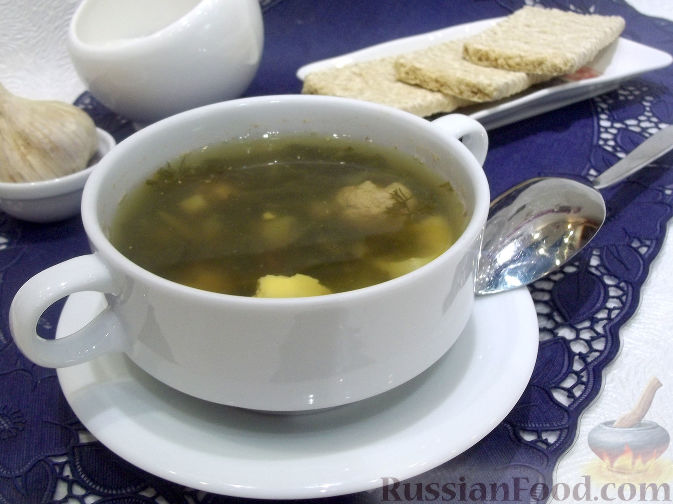 Рецепт: Зеленый борщ с фрикадельками и сельдереем на RussianFood.com