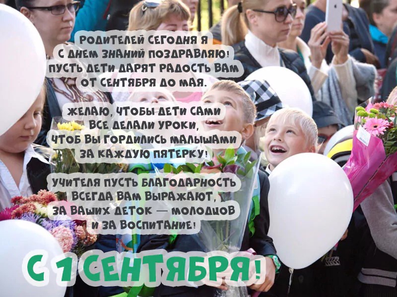 Вас, родители, конечно,Поздравляем мы с Днем знаний.Чтоб ребенок стал успешным,Нужно максимум стараний.