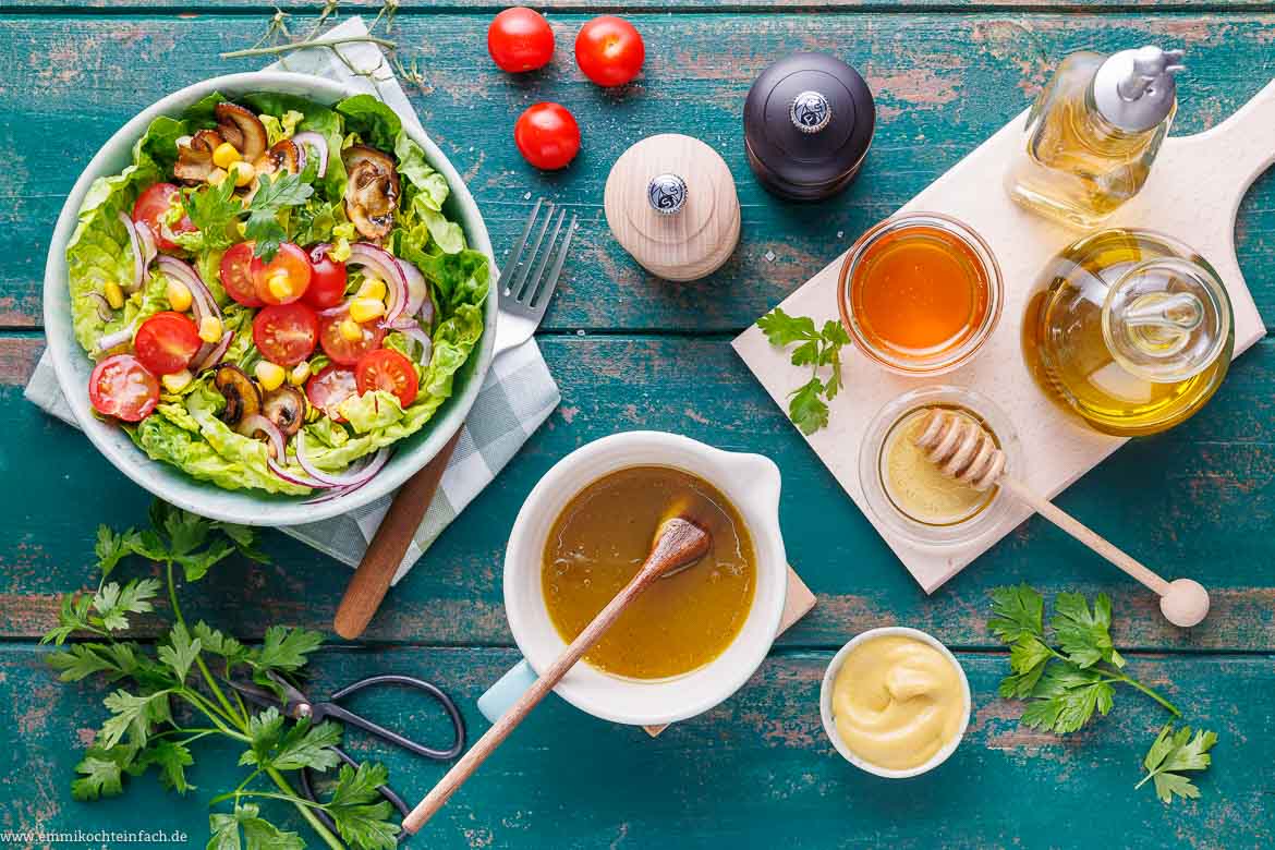 Ein echter Salatdressing Klassiker, mein Honig Senf Dressing! Mit wenigen Zutaten in 5 Minuten selbst gemacht. Das würzige Dressing mit der süßen Honig-Note ist der perfekte Begleiter für alle Salate.