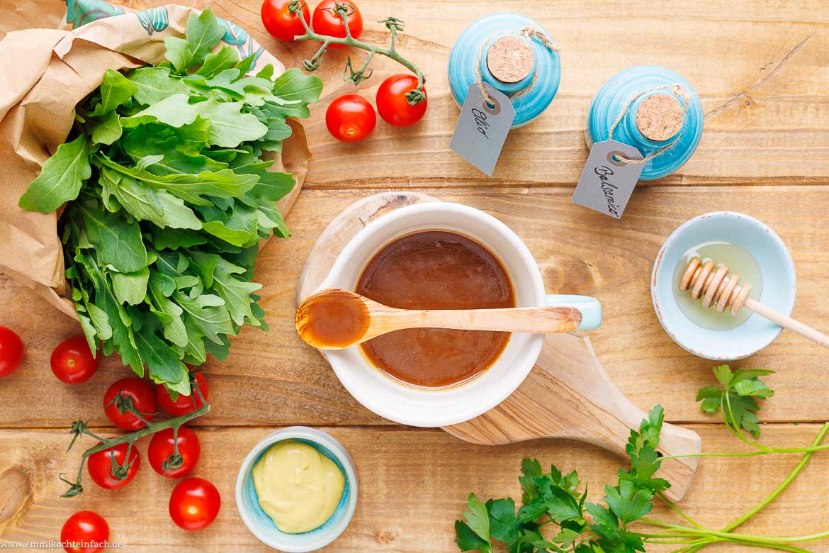 Balsamico-Dressing selber machen Einfaches Rezept für Balsamico-Dressing selber machen. Das dunkle Salat-Dressing passt zu Tomaten, Rucola, Feldsalat oder kräftige Salate.