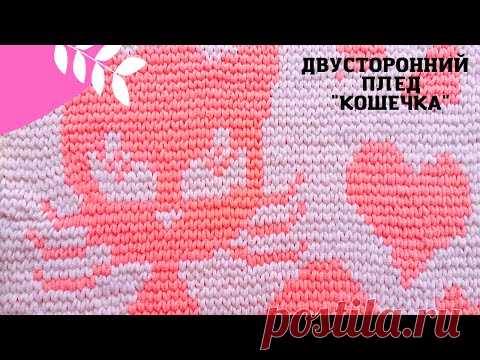 Двусторонний плед из Alize Puffy More. Узор "Кошечка"