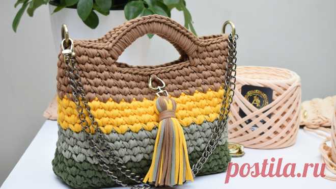 Лучшее дно сумки крючком за 5 минут Красочная большая сумка Красивый узор крючком Турецкий стиль Support my channel with your likes and comments! Thanks!Video master class on crocheting a handbag of T-shirt yarn. Bag size height 24 cm, width 27 cmMateria...