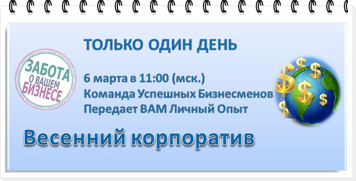 Весна! Начало всех Начал! Весенний Корпоратив 6 Марта в 11-00 мск. Возможности есть у каждого, только куда ВЫ направляете Ваши силы. Пришло ВАШЕ время Проры