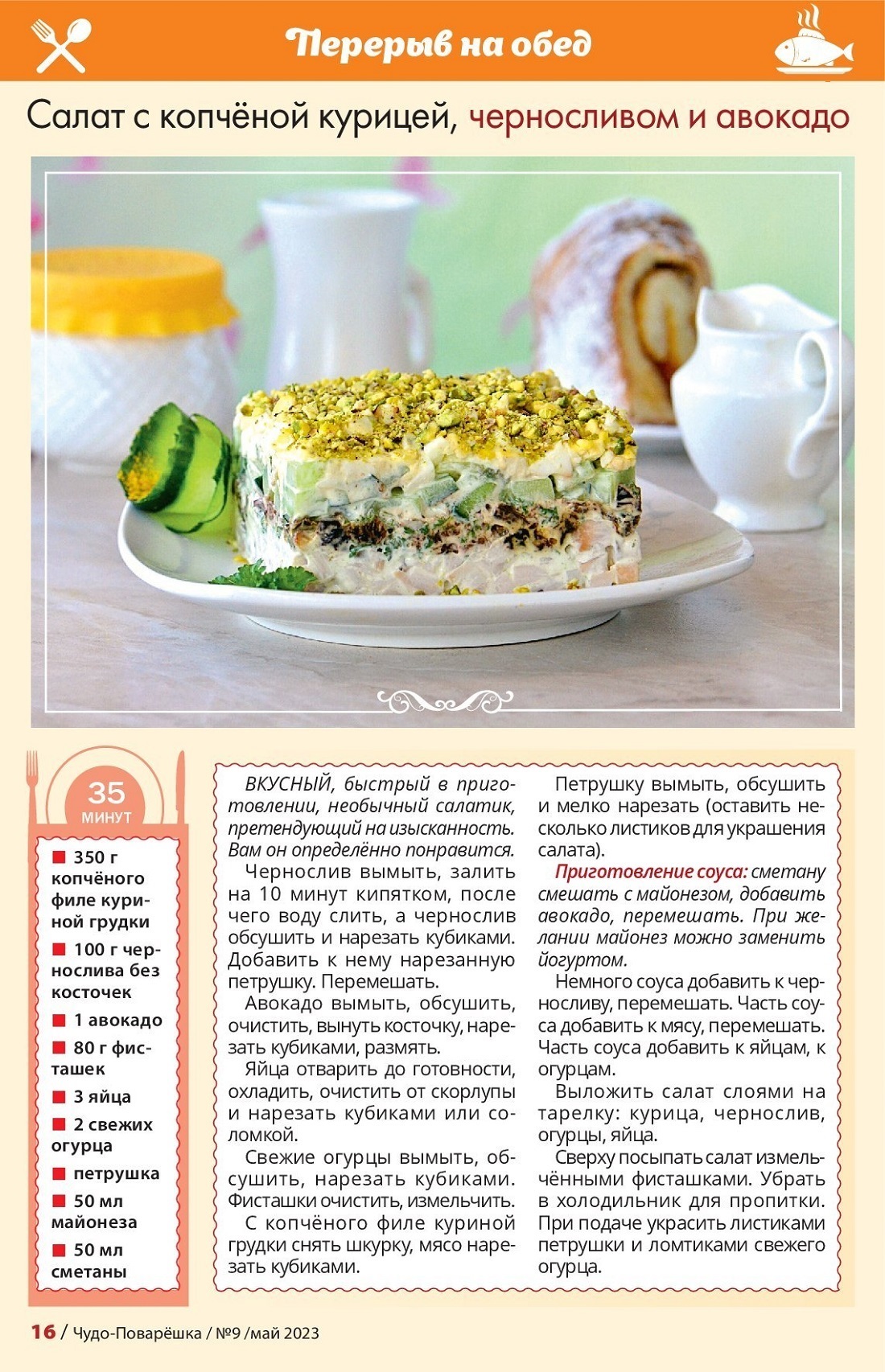 Салат с копченой курицей, черносливом и авокадо