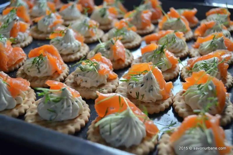 Biscuiti sarati cu crema de branza si somon afumat Biscuiti sarati cu crema de branza si somon afumat – canapeuri pentru bufet suedez. Un preparat gustos si usor de realizat (la rece) care poate deschide apetitul alaturi de un pahar de sampanie. Biscuitii sarati pot fi de diferite forma si tipuri: rotunzi, patrati, dreptunghiulari. Am folosit o crema de branza gen Philadelphia (versiunea mai […]