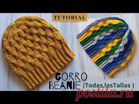 Шапка в стиле BEANIE связана крючком с красивым плетением. УЧЕБНИК//Начинающие. Все размеры. Легкий