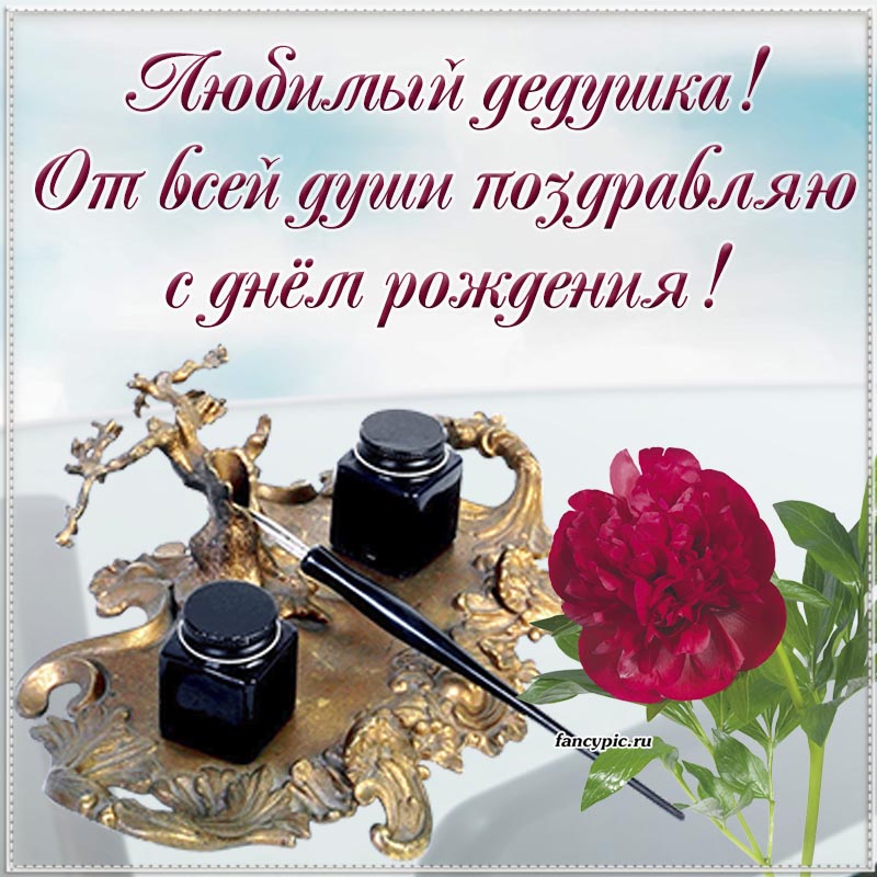Цветок и поздравление от всей души для любимого дедушки