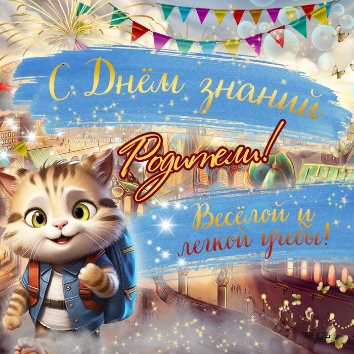 День сентябрьский сегодня На учебу всех зовет. Мамы, папы, поздравляем, Дел и вам перепадет.