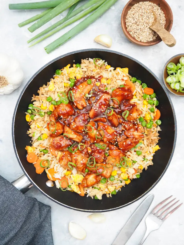 Honig Knoblauch Hühnchen - Schnelles Pfannengericht mit Fleisch oder Fisch Unser Honig Knoblauch Huhn Rezept ist einfach, schnell gemacht und mega lecker. Die himmlische Marinade aus Knoblauch, Honig und Sojasauce passt auch perfekt zu Lachs oder Tofu.