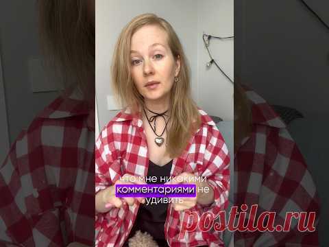 Женщина в клетчатой рубашке сидит на фоне белой стены и что-то объясняет, судя по тексту на изображении.