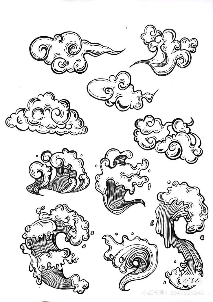 Гравировка. Эскиз. Воздух. Вода. Облака.
