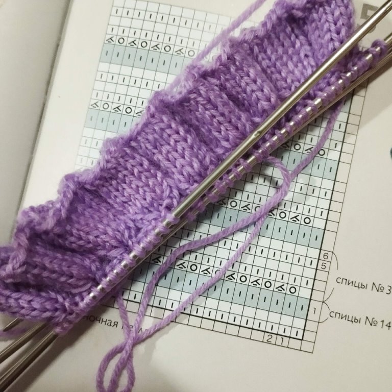 РЮШИ СПИЦАМИ Набрать двойное количество петель + 1 для замыкания вязания в круг. Например, если для вязания носков необходимо 60 петель - набираем 120. Соединив петли в круг и распределив их равномерно на 4 спицы приступаем к вывязыванию рюши: 2 изнаночных, 6 лицевых. Таким образом вяжем по кругу 5 рядов. Провязав 5 рядов приступаем к сокращению: 2 изнаночные, 2 вместе лицевой с наклоном влево, 2 лицевые, 2 вместе лицевой с наклоном вправо. Повторяем дважды, на спицах долж...
