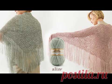 Вязаная крючком гигантская ракушечная шаль с пряжей Alize Angora Gold