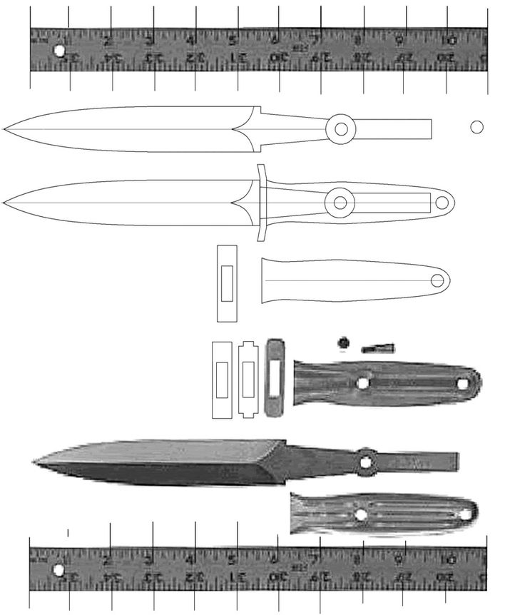 Нож. Обоюдоострый. Размеры. Чертёж.