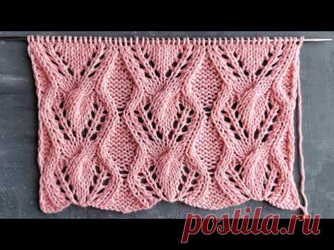 Рельефные ромбы с ажурными листьями для вязания джемперов, пледов