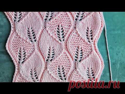 Вариант вязания ажурного узора Листья спицами