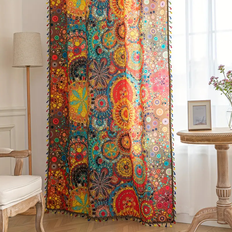 2 шт. Сельский дом Многоцветные шторы бохо Шикарный - Temu Moldova