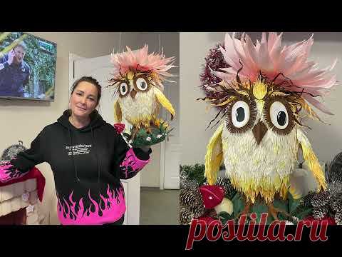 Новогодняя сова. Поделка из гофрированной бумаги.