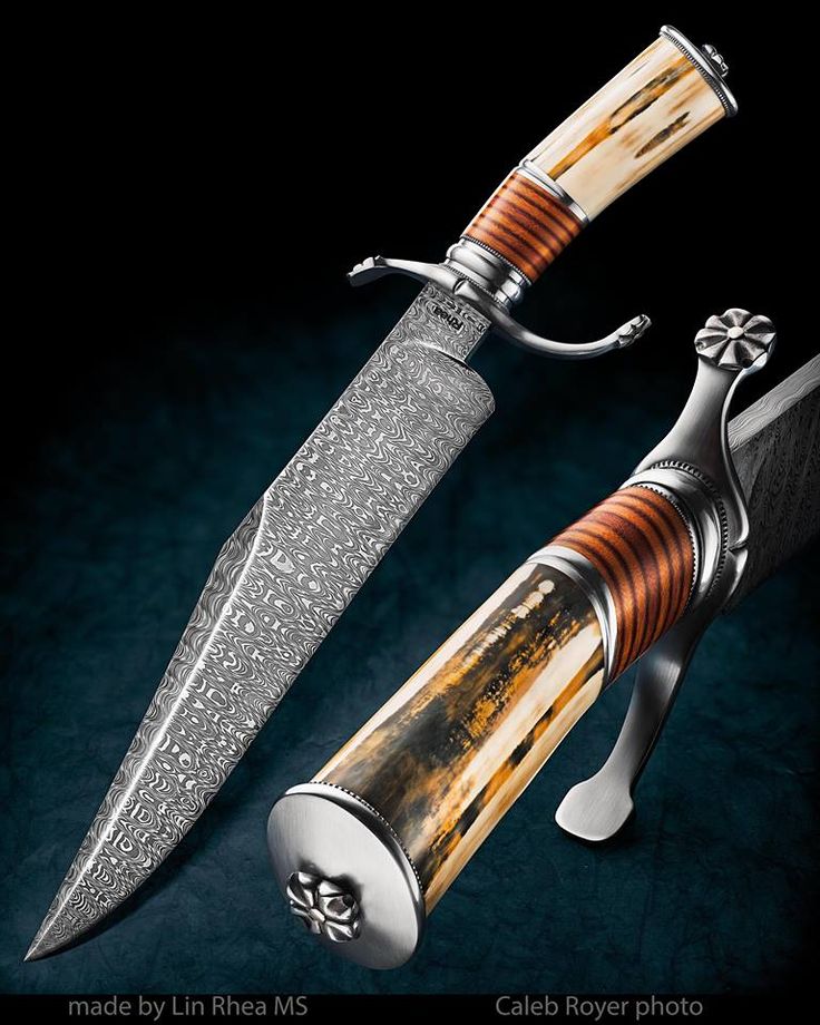Ножи боуи от Lin Rhea MS. Дамасская сталь. Рог. Кожа.