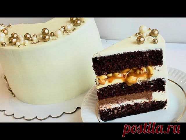 Торт СНИКЕРС ! Нежный сочный ! Простой рецепт! Всем привет! Сегодня печем торт Сникерс простой рецепт,НО Очень вкусный!!! Рецепт: Шоколадный бисквит: РЕЦЕПТ: 4 яйца С1( или 3 С0) 180г сахара - это общее кол-во(130 г добавляем в заварную основу,50г в яйца) 150г пшеничной муки в/с 5г разрыхлителя ( 1 ч.л) 30 г какао-порошка 100г растительного масла 75г воды Форма от 16-18 см на видео форма 18см в диаметре,высота формы - 10 см,бисквит получается высотой 8 см. Можно испечь б...