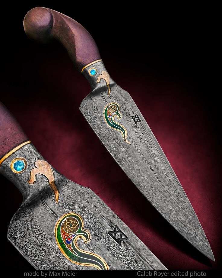 Нож от Max Meier. Дамасская сталь. Всечка золотом. Эмаль.