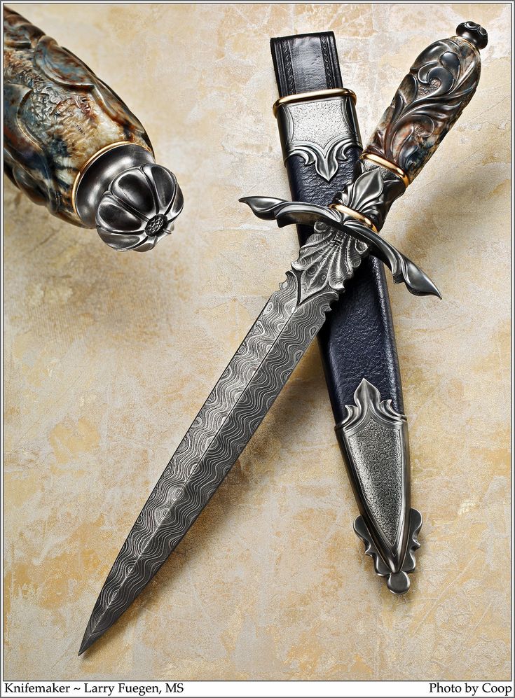 Кинжал от Larry Fuegen, MS. Дамасская сталь. Литьё. Резьба по камню.