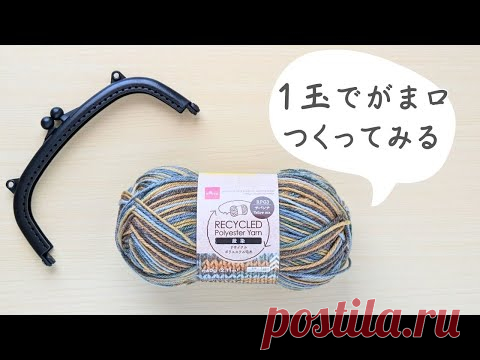 【ダイソー】リサイクルポリエステルを1玉使いきりで大きめがま口つくってみる|かぎ針編み|How to crochet Coin Purse recycled polyester.