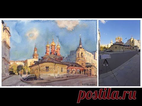 20240825 1st Smolensky Lane, Moscow. Watercolor plein air painting