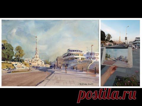 20240831 Rechnoy Vokzal (Northern River Terminal in Moscow) Watercolor plein air painting