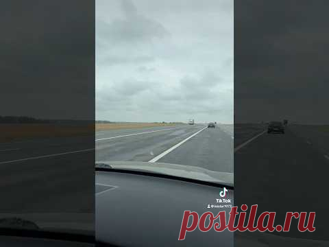 Дорога с автомобилями под пасмурным небом, вид из салона машины.