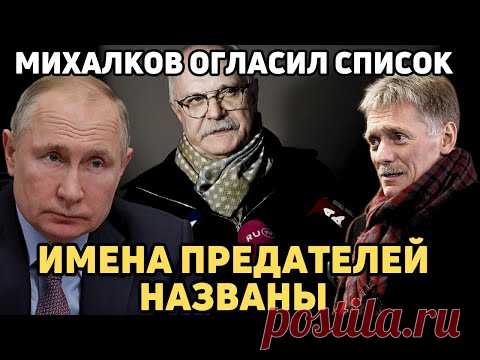 Изображение с тремя мужчинами и текстом "Михалков огласил список. Имена предателей названы".