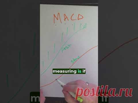 Человек рисует на листе бумаги график, помеченный как MACD. Видны красная и зелёная линии, а также надписи "fast" и "slow". На изображении есть текст "measuring is if".
