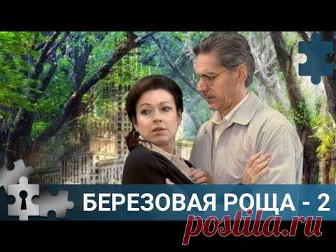 Изображение с двумя людьми на фоне леса и здания, с надписью "Березовая роща - 2". Это может быть постер к фильму или сериалу.