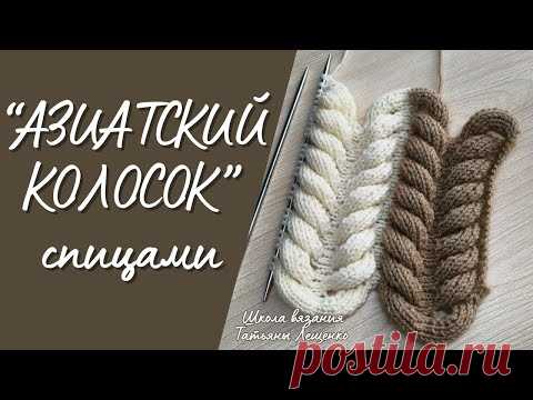 Изображение показывает два вязаных азиатских колоска, выполненных спицами, на фоне коричневого цвета с текстом.