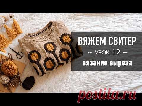 🪢 Вяжем СВИТЕР РЕГЛАНОМ с ЖАККАРДОМ 🧶 Урок 12. Вязание выреза
