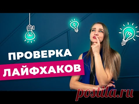 Изображение женщины, задумчиво глядящей в сторону, на фоне иллюстраций в виде лампочек. Текст на изображении гласит: "Проверка лайфхаков".