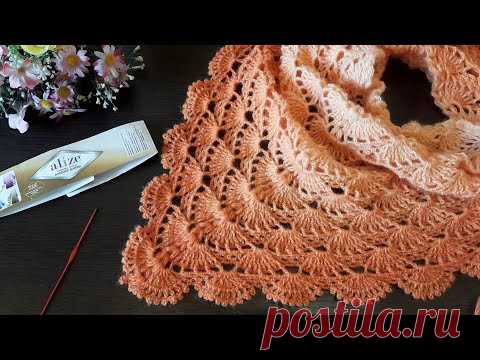 Вяжем бактус (шаль) "Жар-птица" крючком.